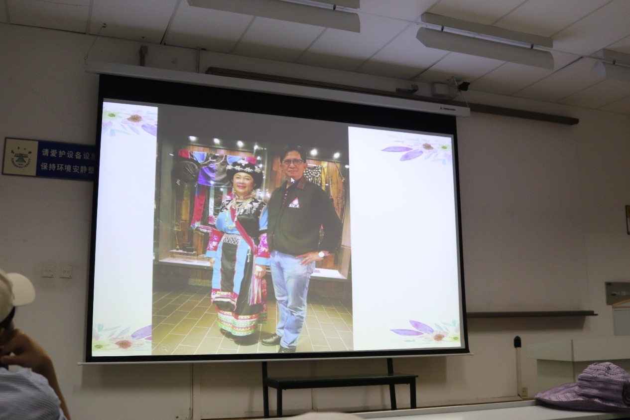 讲座伊始,高志英老师指出本次讲座主要面向的是本学院的学生,因此会围绕讲座分享一些如何在田野中发现问题、提炼选题的经验。其次,高志英老师讲述了这个讲座主题的来源。在一次与本院老师同行去台湾考察之后,她把自己的研究空间拓展到了台湾,之后又带领自己的学生去调查以及拍摄纪录片,与台湾朋友结下了深刻的友谊。接下来,高志英老师对讲座主题的三个关键词“云南人”、“桑梓认同”、“文化重构”进行了介绍。常言道“漂洋过海来看你”,但是台湾与大陆只是隔着一个海峡,因此她认为“跨过海峡来看你”较恰当,其中“看”有双重含义:“我去看他们”和“他们来看我们”,在这双方的互动过程中会有一个情感的交流,就会聚焦在“认同”中。“桑梓认同”是因为诗中会把一个人们向往地方比作灯塔,而古代家旁的桑树和梓树常是父母种的,梓树还可以生产蜡,给人们带来光亮,“桑梓”就常借指家乡,“维桑与梓,必恭敬止”。对于台湾的“云南人”来说,家乡可以说是一个遥远的梦,他们在台湾已经是三、四代人了,这些人还曾在缅甸和美斯乐,中缅边境的居多,所以他们的故乡已经不能特指一个地方。“认同”与“文化重构”体现在他们把在故乡接触的一些文化事项移植到台湾去,产生了一些有趣的另外的外化事项,这样把台湾的“云南人”集中到一起,加强了他们的认同感和凝聚力。